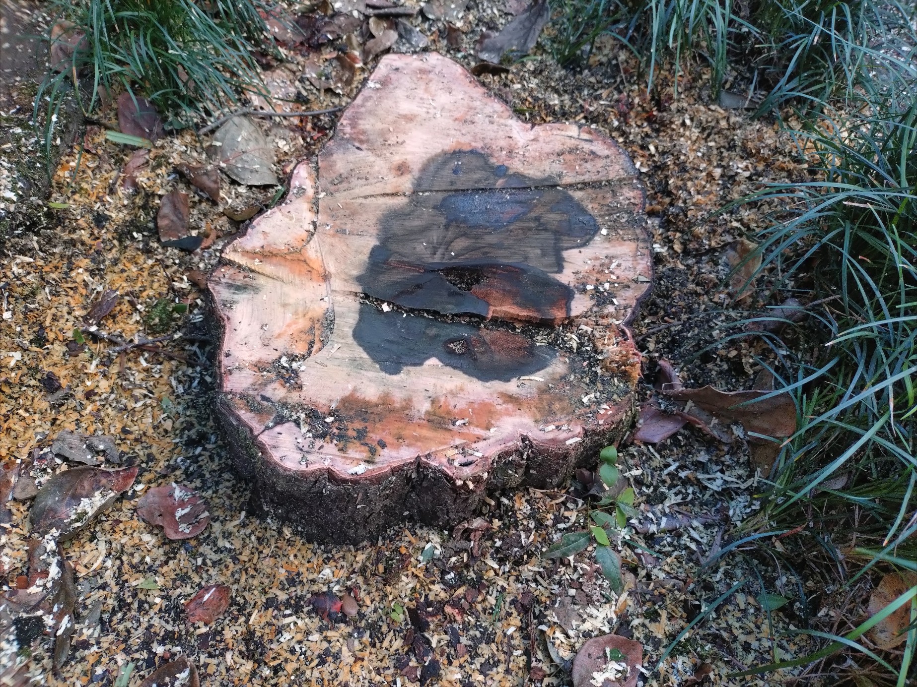 ずっとそこにあった木なので寂しい気もしますが、老木になり、台風や強風の際に家のほうへ倒れてしまう可能性が出てきたためです。